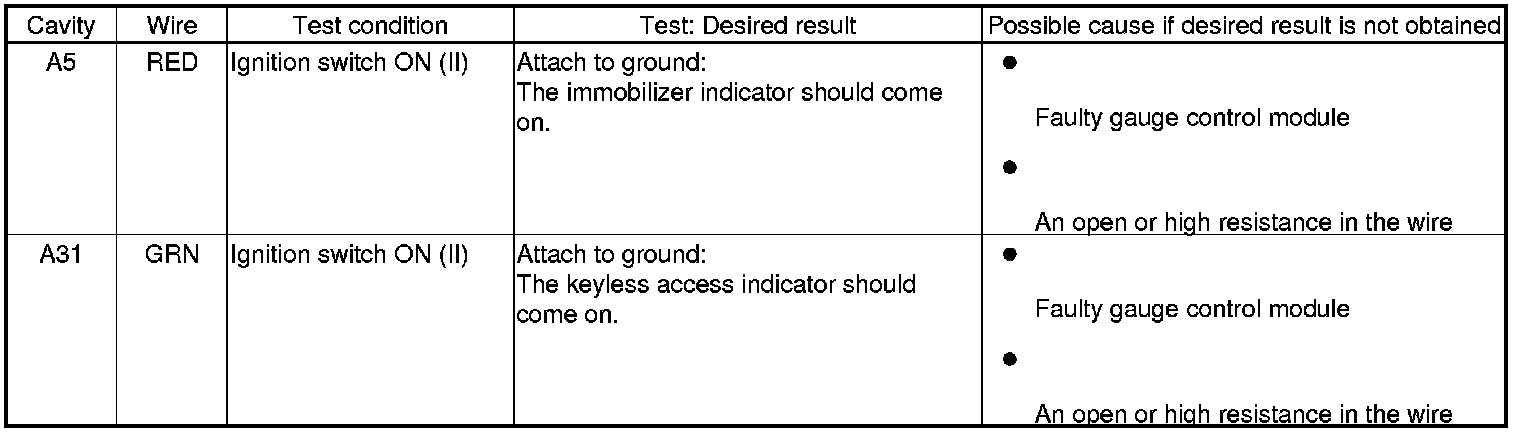 6. Reconnect the connectors to the keyless access control unit, and do the following input tests.