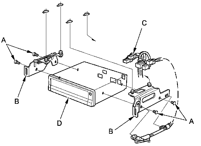 5. Loosen the mounting bolts, then remove the four screws (A) from the navigation unit brackets (B).