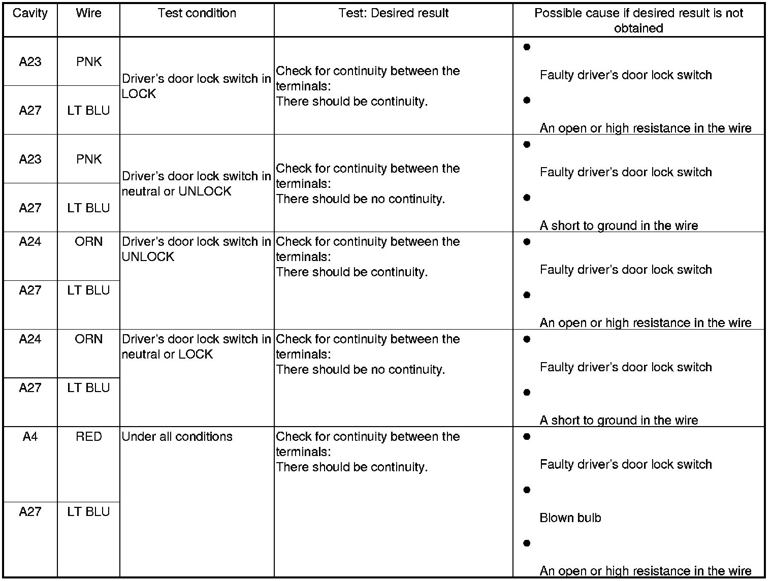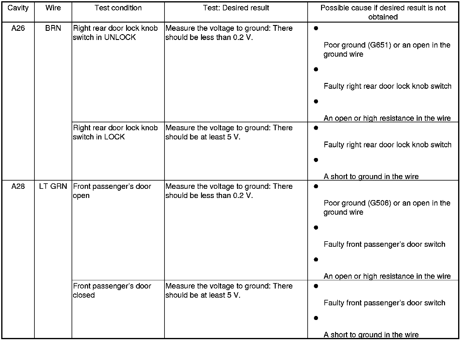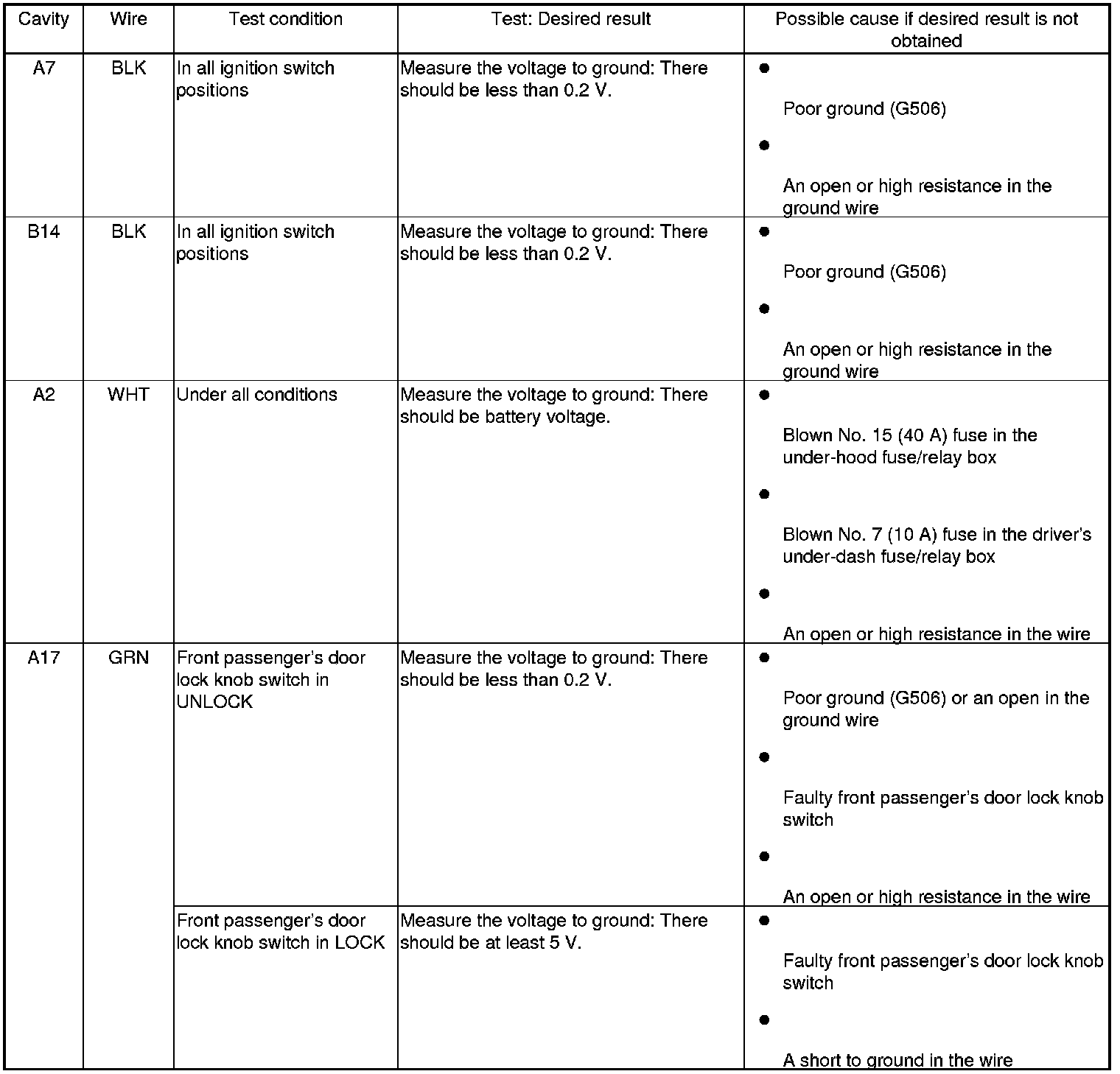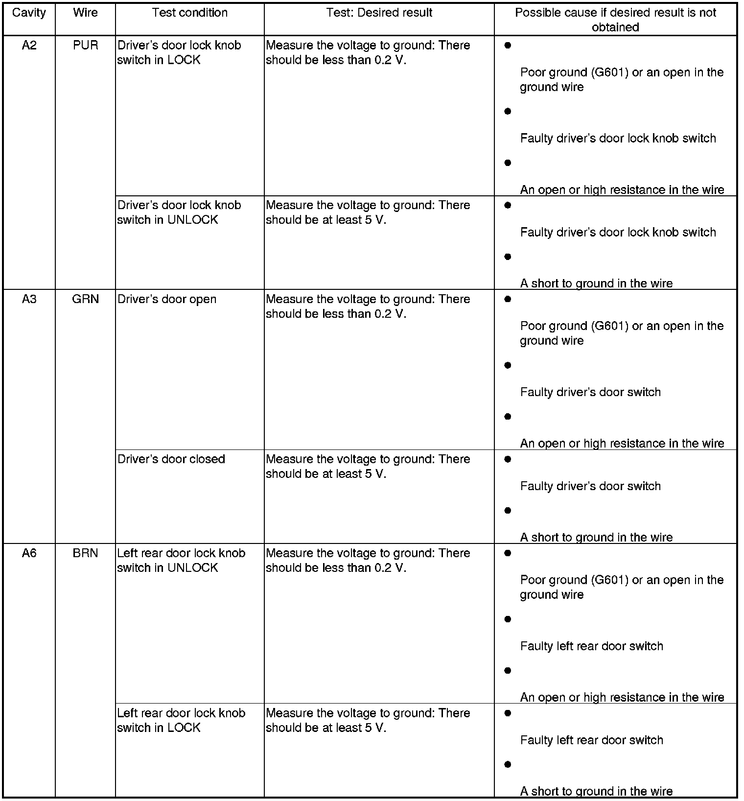 Keyless/Power Door Locks/Security System (MICU, Driver's and Passenger's MPCS Unit, and Left and Right Rear Window Switch) Input Test