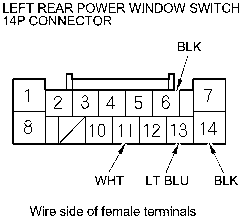 17. Turn the ignition switch to LOCK (0), and remove the left rear power window switch Passenger's Power Window Switch Test/Replacement.
