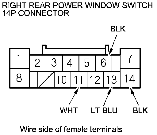 21. Turn the ignition switch to LOCK (0), and remove the right rear power window switch Passenger's Power Window Switch Test/Replacement.