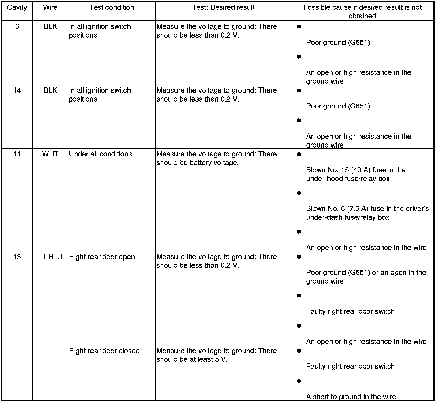Keyless/Power Door Locks/Security System (MICU, MPCS Unit, Rear Window Switch) Input Test