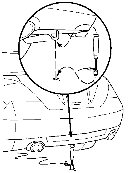 8. Position the gas strut holder between the rear tow hook and the mark on the floor.