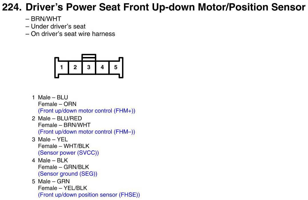 View 224 - Driver's Power Seat Front Up-Down Motor/Position Sensor Connector View