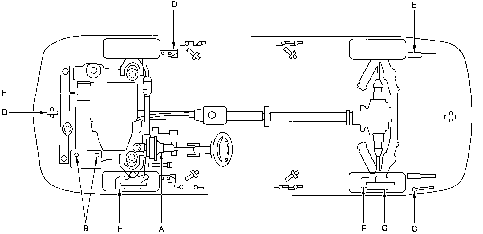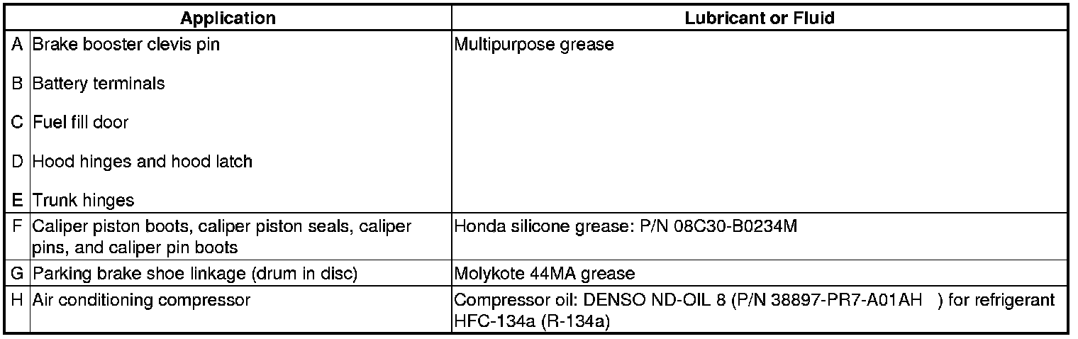 - Lubricate the following areas using the recommended lubricants and fluids.
