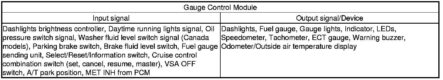 The fast controller area network (F-CAN) and the body controller area network (B-CAN) share information between multiple electronic control units (ECUs). B-CAN communication moves at a slower speed for convenience related items and for other functions. F-CAN information moves at a faster speed for "real time" functions such as fuel and emissions data. To allow both systems to share information, the gauge control module translates and relays the information from the B-CAN to the F-CAN and from the F-CAN to the B-CAN. This is called the Gateway Function.