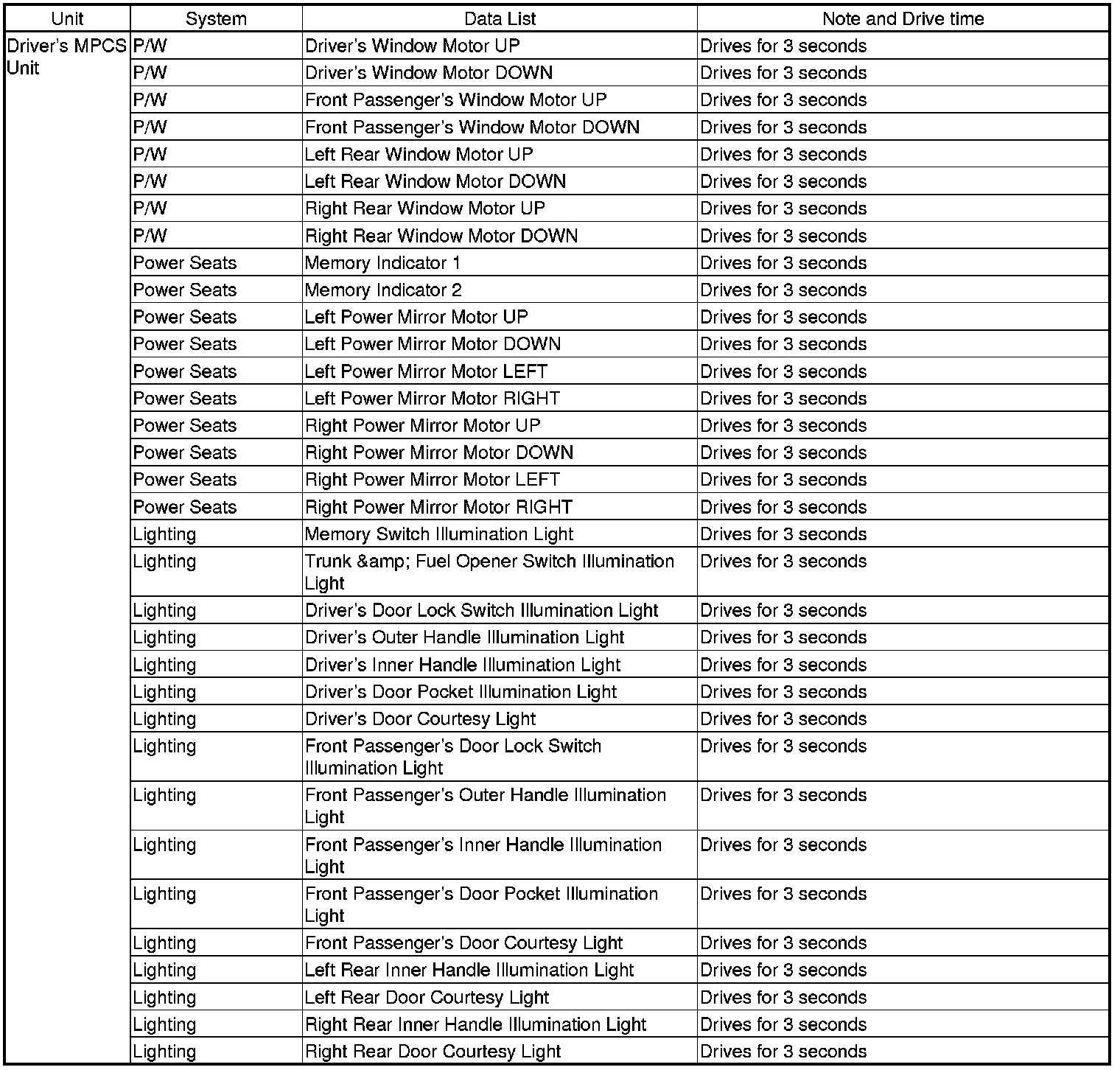 - The driver's MPCS unit transmits a door lock switch message.