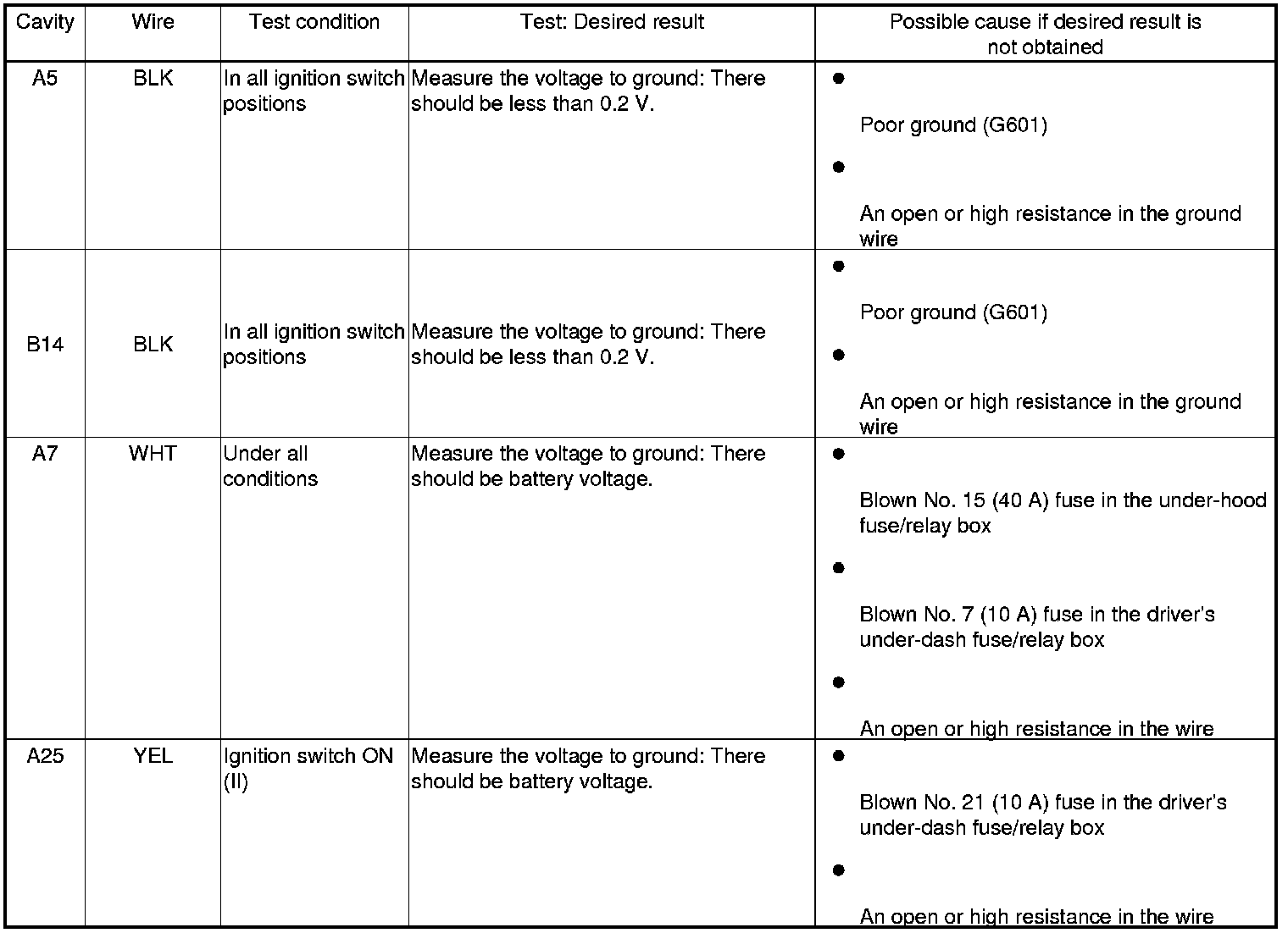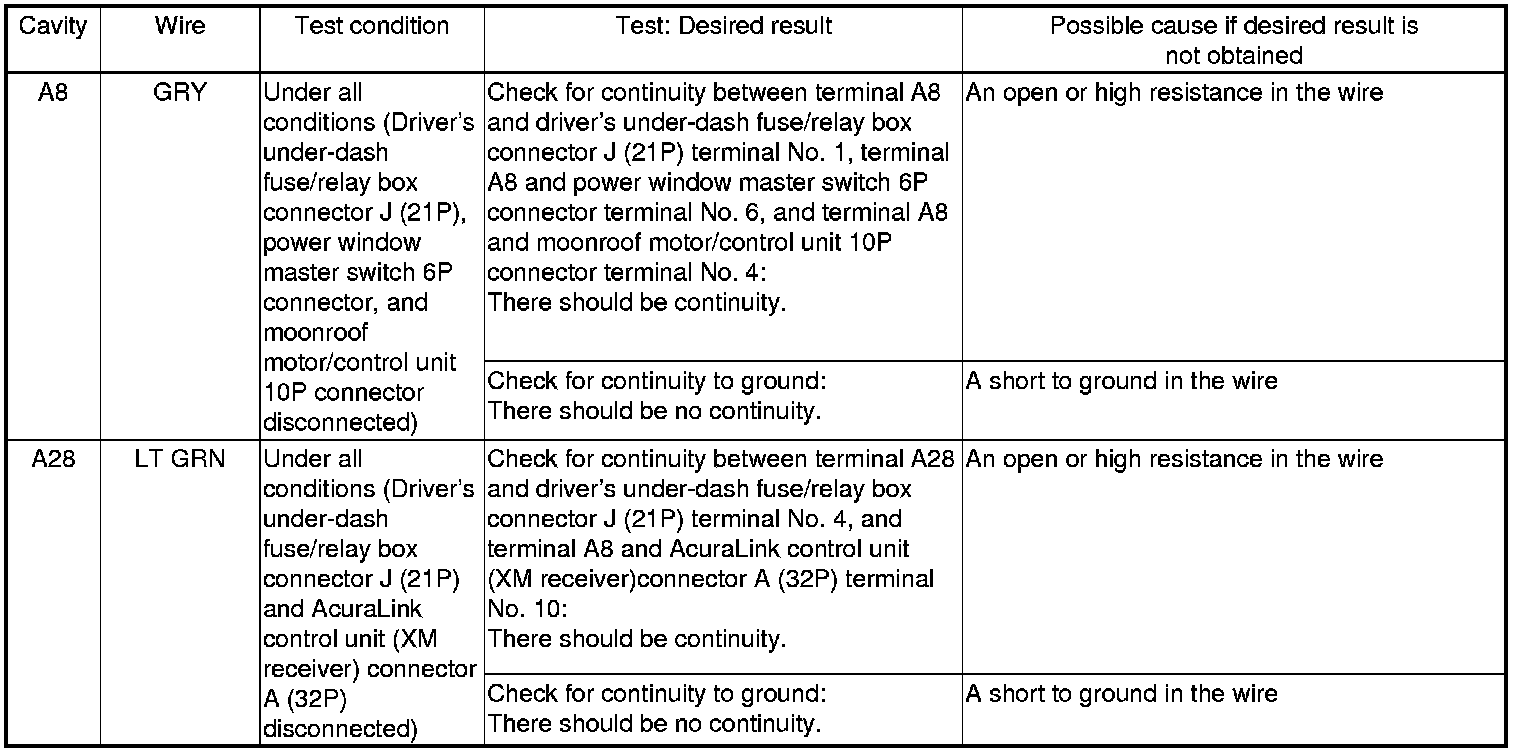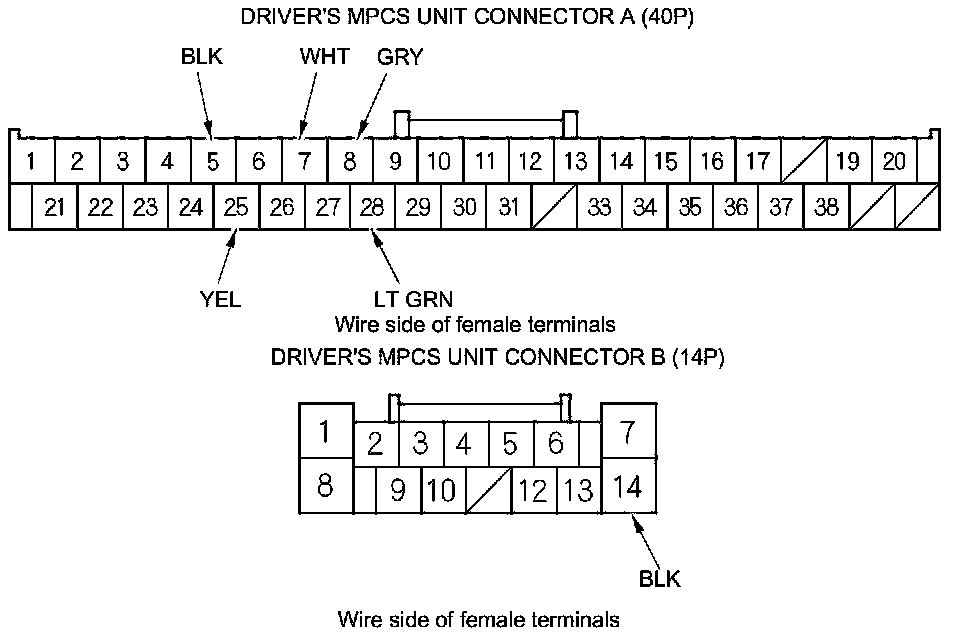 6. Disconnect driver's MPCS connector A (40P), and do the following input tests.