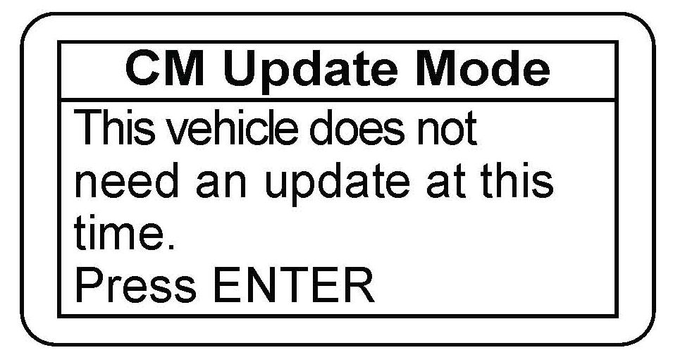 16. If an error occurs during the updating procedure, an error message appears. Keep the ignition switch in ON (II). Press ENTER to display the error code. Refer to the CM Update Error Code Table and Error Messages in the MVCI User Guide for more information about the code and its solutions.
