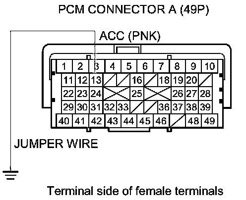 12. Momentarily connect PCM connector terminal A13 to body ground with a jumper wire several times.