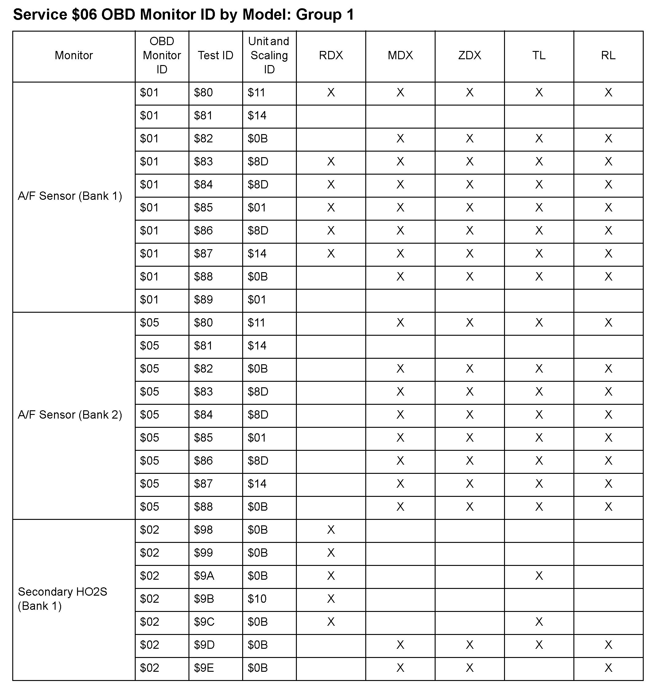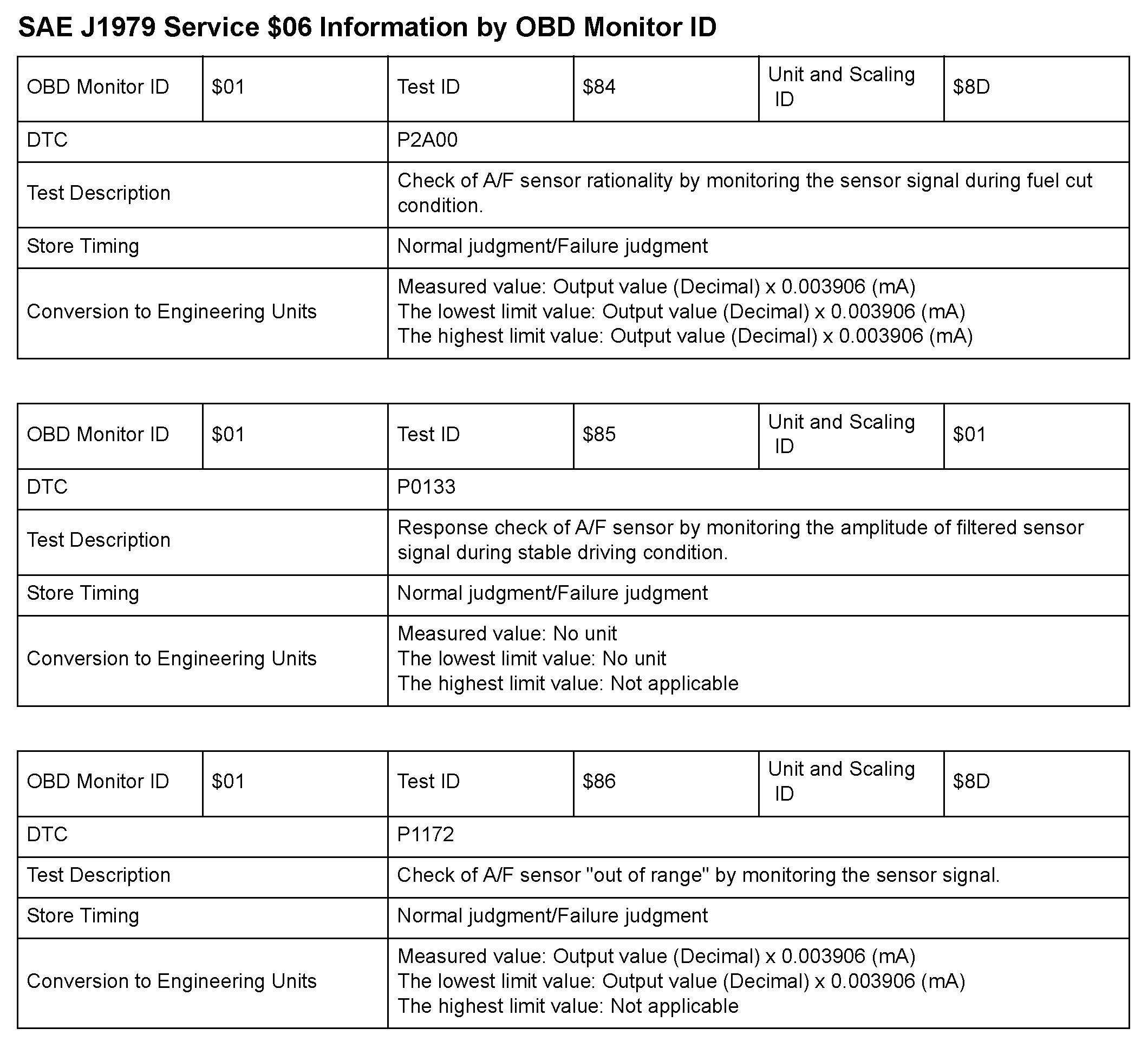 MODE 06 DATA CHARTS