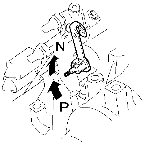 8. Turn the control lever fully counterclockwise to the P position. Then turn the control lever back two click-stopped positions so that the selector control shaft is in the N position.