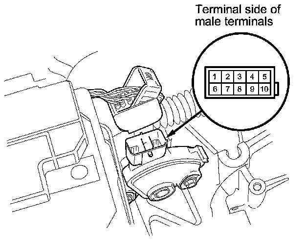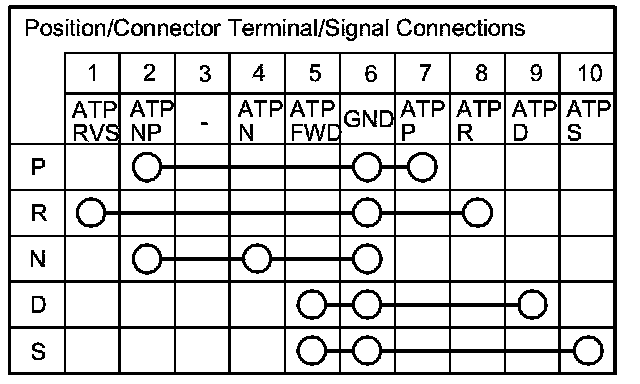 3. Check for continuity between the terminals at the transmission range switch connector. There should be continuity between the terminals in the following table for each transmission range switch position.