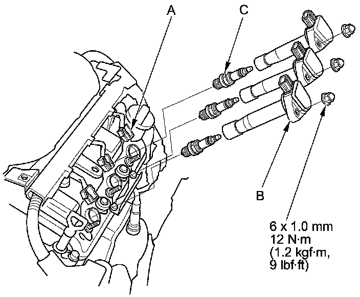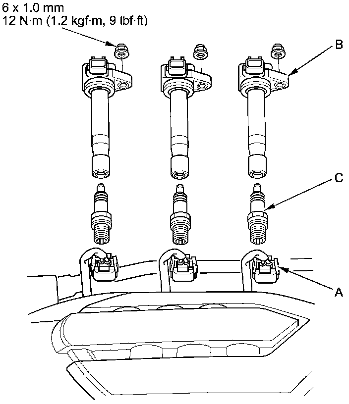 5. Remove the spark plugs (C).