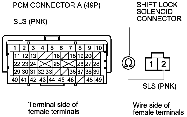 Repair an open in the wire between PCM connector terminal A2 and the shift lock solenoid connector.�