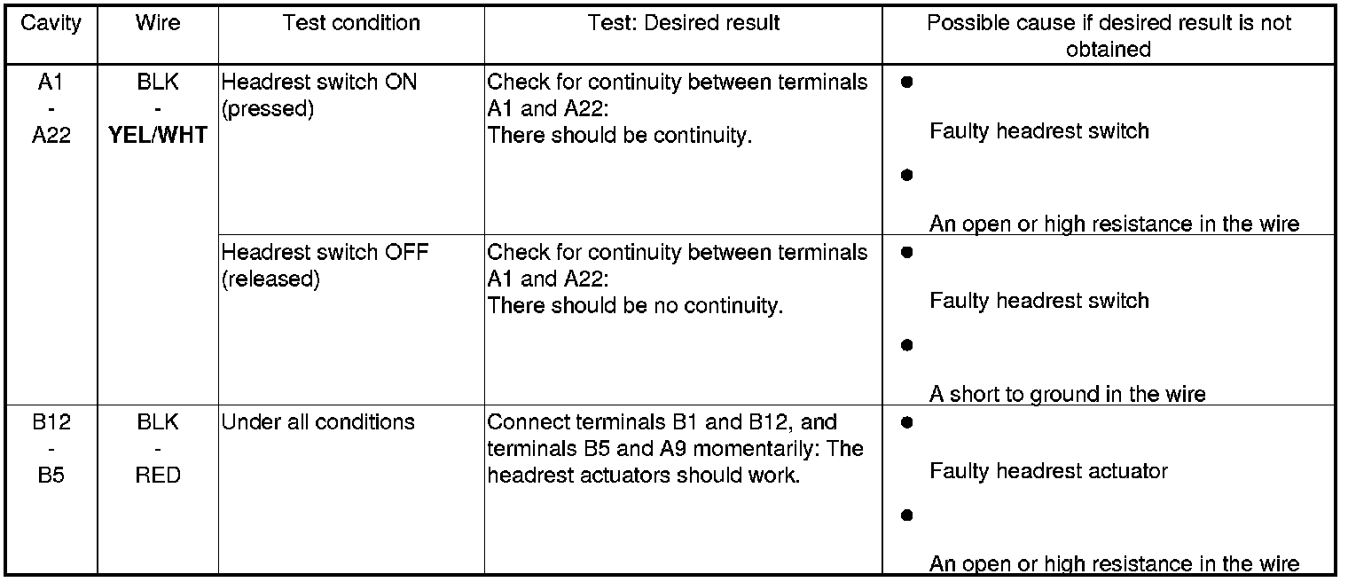 Home >> Acura >> 2011 >> RL V6-3.7L >> Repair and Diagnosis >> Relays and Modules >> Relays and Modules - Body and Frame >> Power Seat Control Module >> Testing and Inspection >> Power Rear Headrests (Power Seat Control Unit) Input Test