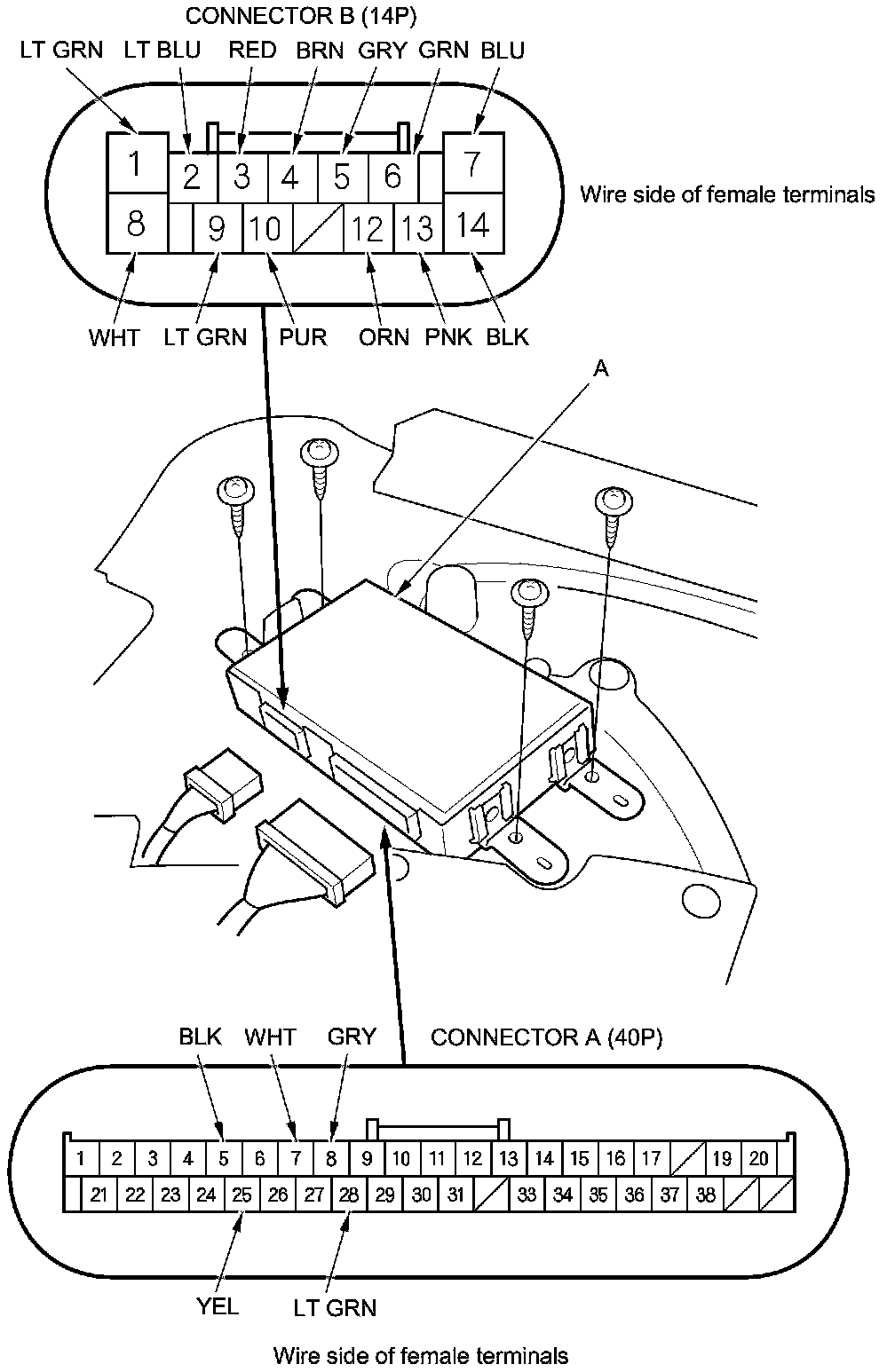 3. Disconnect driver's MPCS unit (A) connectors A (40P) and B (14P).