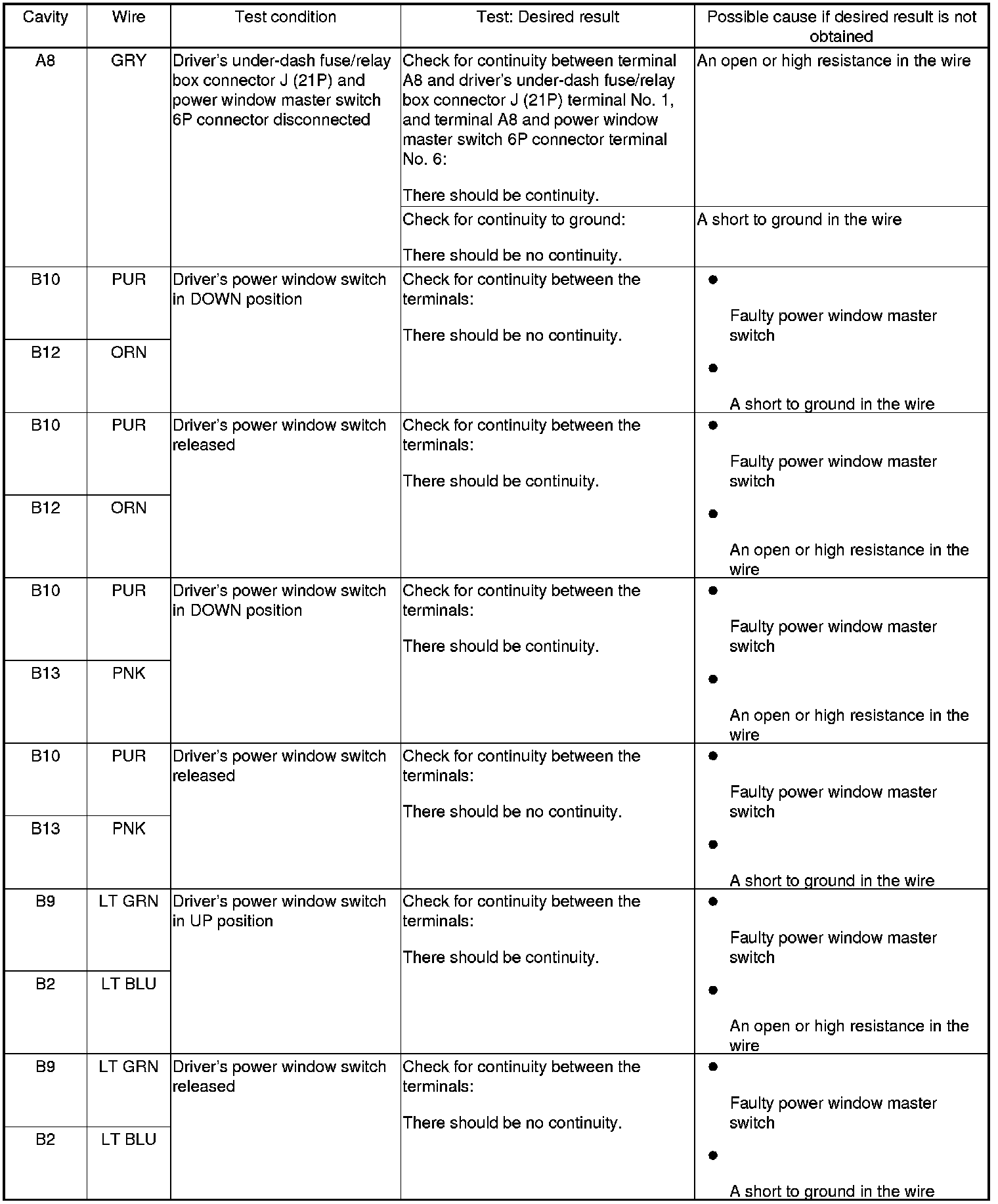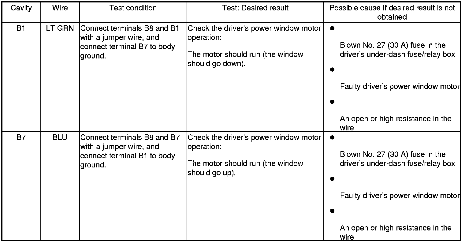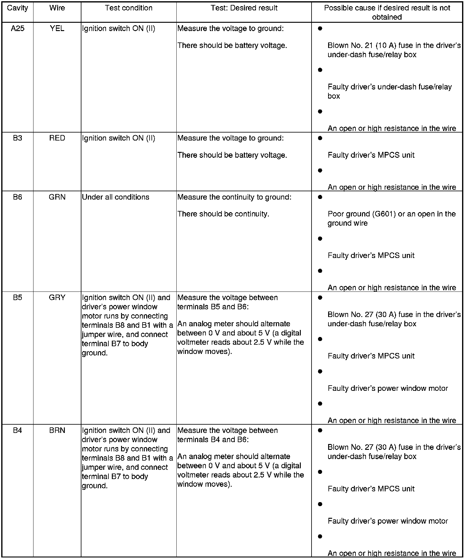 Power Windows (Driver's MPCS Unit) Input Test/Replacement