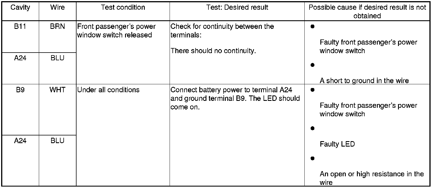 Power Windows (Front Passenger's MPCS Unit) Input Test/Replacement