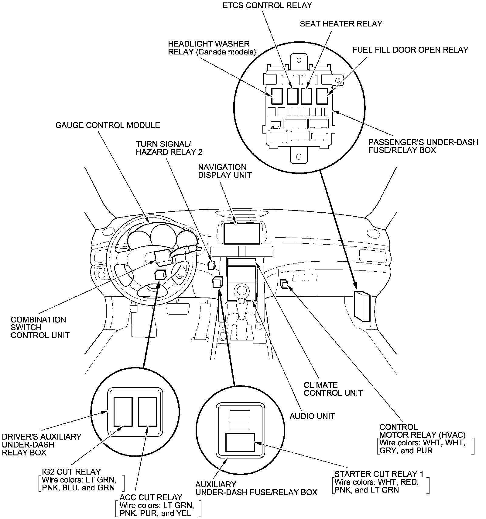 Relay and Control Unit Locations - Dashboard