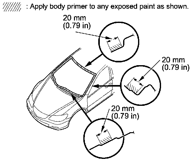 - Do not apply body primer to the windshield, and do not mix up the body primer applicator and the glass primer applicator.
