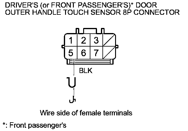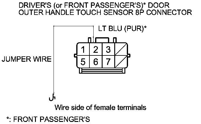 12. Connect the driver's (or front passenger's)* door outer handle touch sensor 8P connector terminal No. 2 to body ground with a jumper wire.