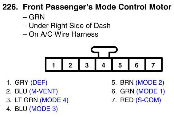 View 226 - Front Passenger's Mode Control Motor Connector View