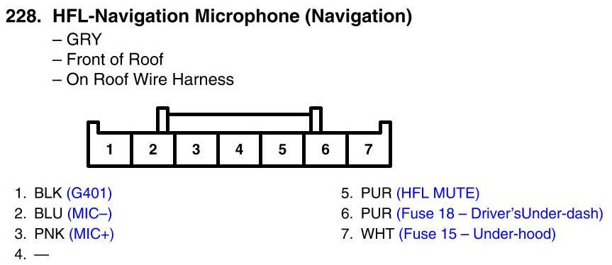 View 228 - HFL/Navigation Microphone Connector View (With Navigation)