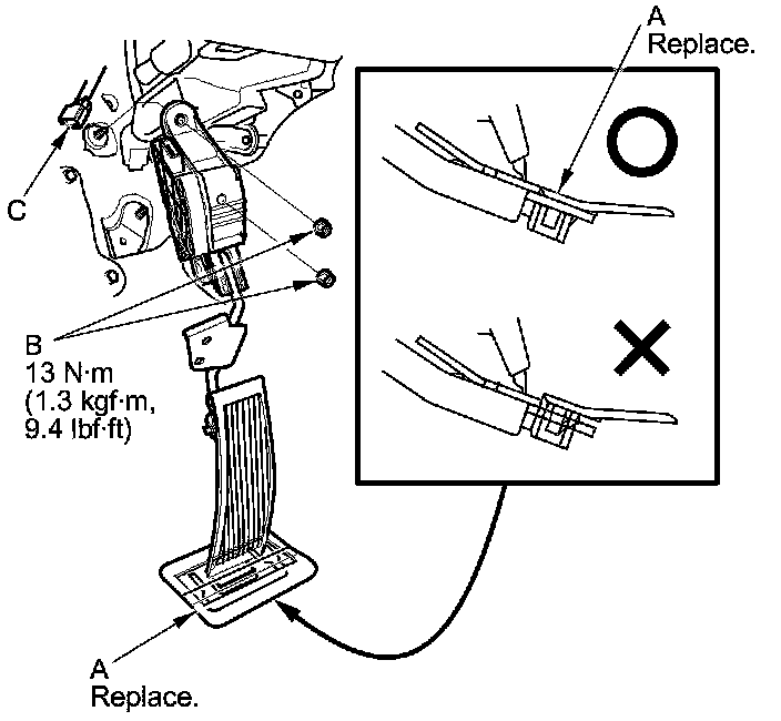 - The clip must be replaced whenever the accelerator pedal module is installed.