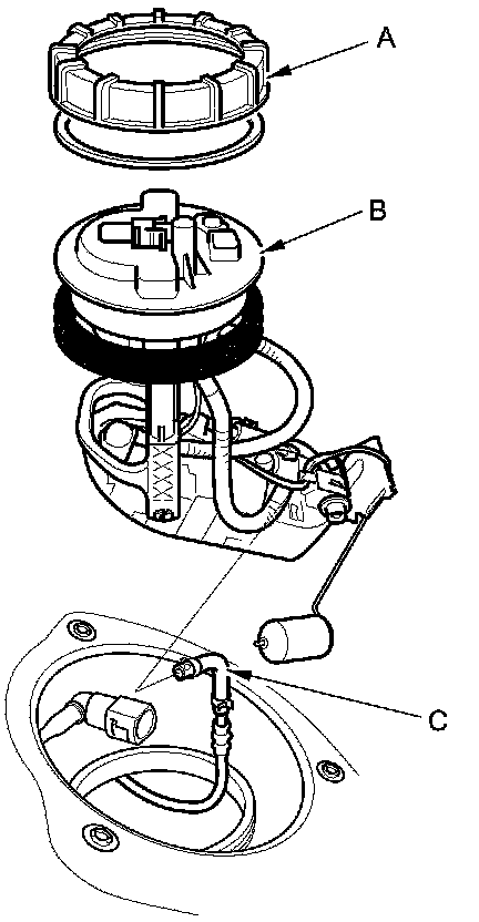 5. Disconnect the quick-connect fitting (C) from the fuel tank unit.