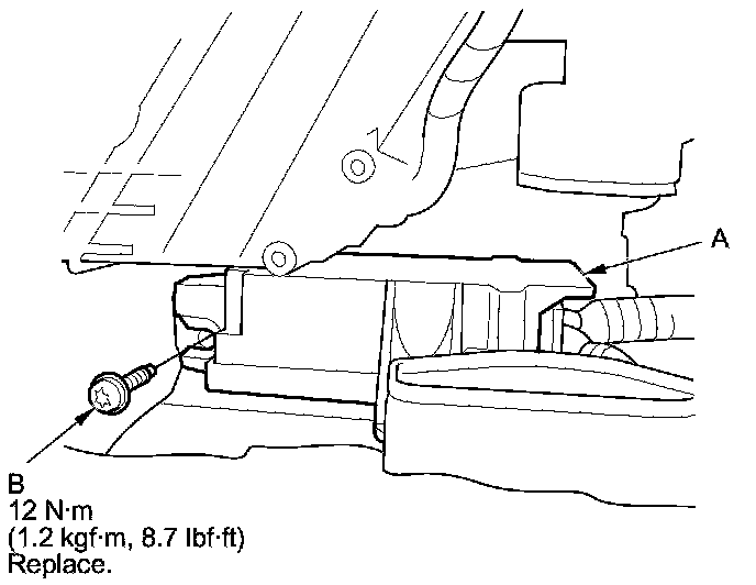 1. Install the SRS unit (A) with the new TORX bolt (B) using a TORX T30 bit.