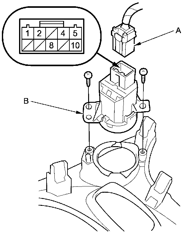 2. Disconnect the 10P connector (A) from the engine start/stop switch (B).