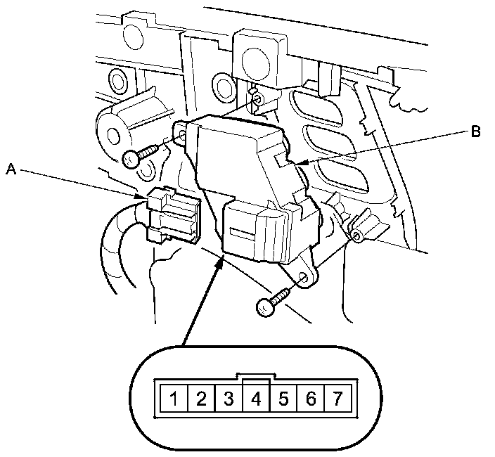 2. Disconnect the 7P connector (A) from the driver's position memory switch (B).