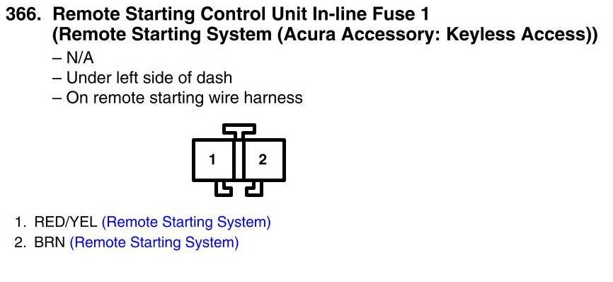 Remote Starting Control Unit In-Line Fuse 1 Connector View (Remote Starting System (Acura Accessory: Keyless Access))