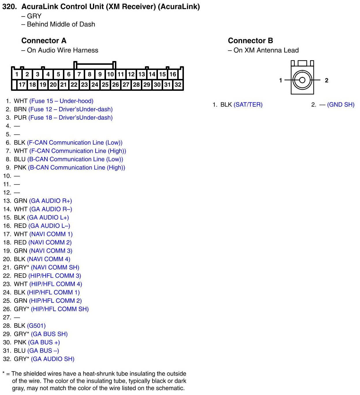 AcuraLink Control Unit (XM Receiver) Connector View