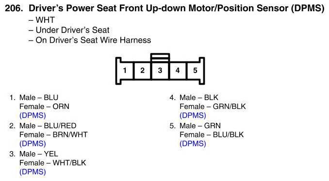 Driver's Power Seat Front Up-Down Motor/Position Sensor Connector View (DPMS)