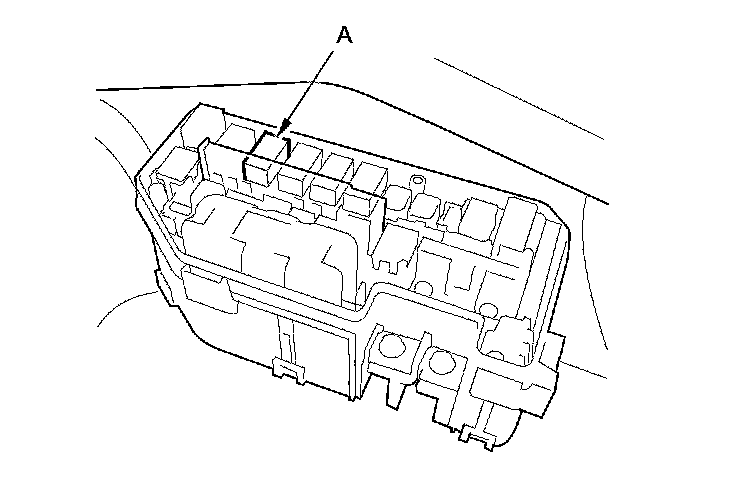 66. Remove PGM-FI main relay 1 (A) from the under-hood fuse/relay box.