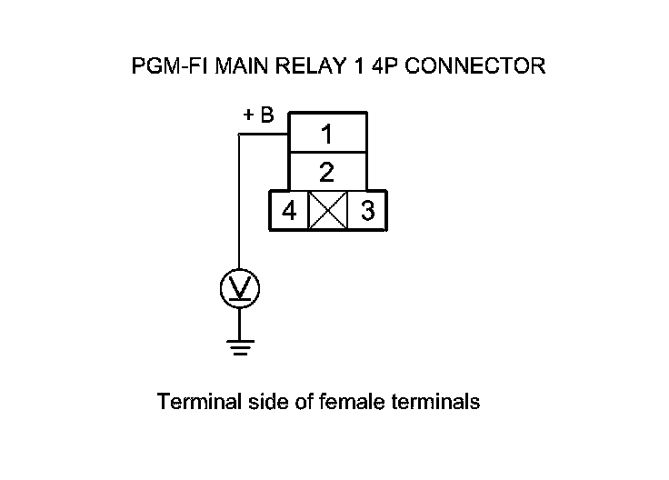 67. Measure the voltage between PGM-FI main relay 1 4P connector terminal No. 1 and body ground.