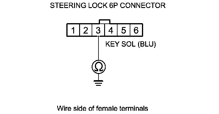 10. Check for continuity between steering lock 6P connector terminal No. 3 and body ground.