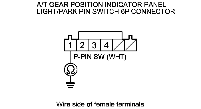 16. Check for continuity between A/T gear position indicator panel light/park pin switch 6P connector terminal No. 1 and body ground.