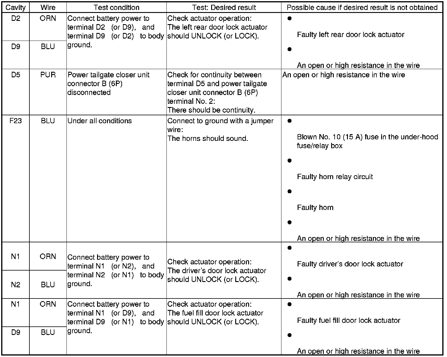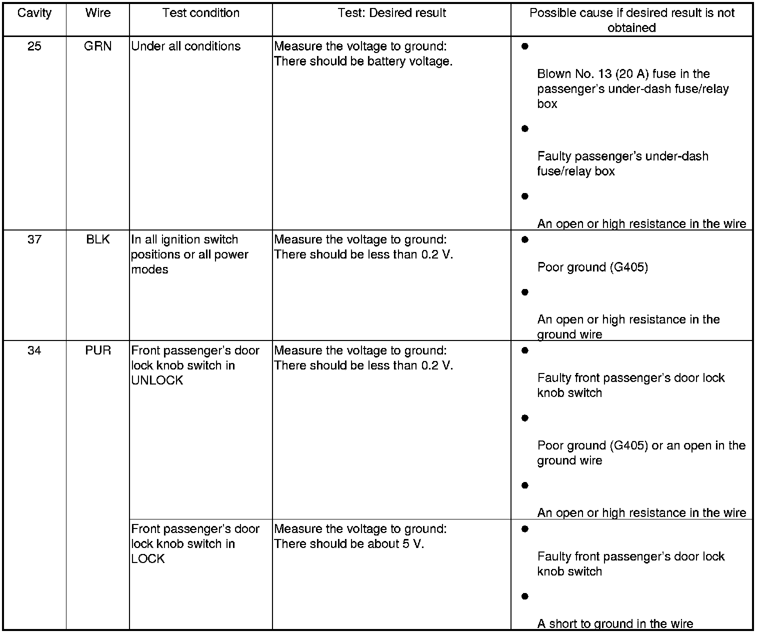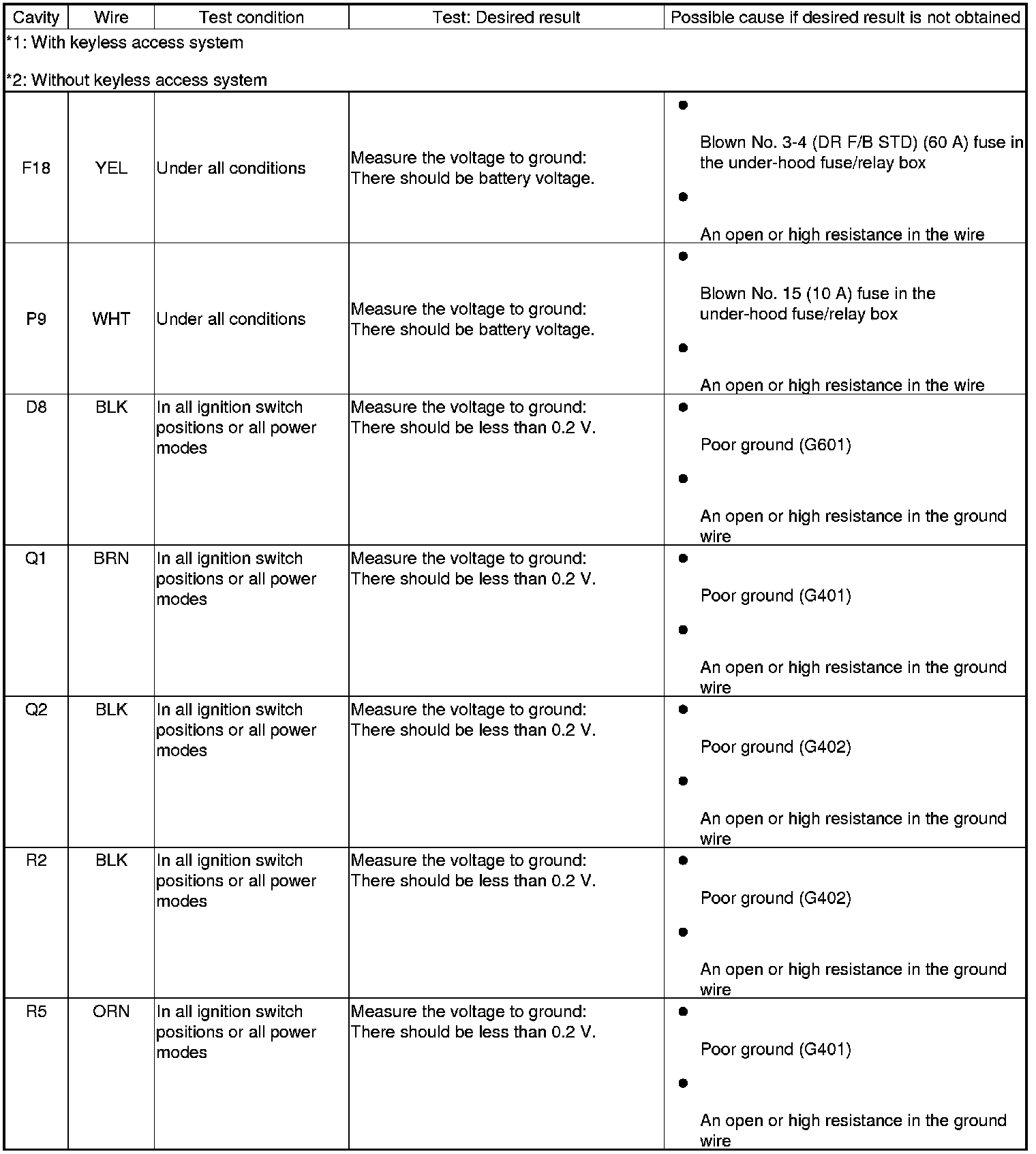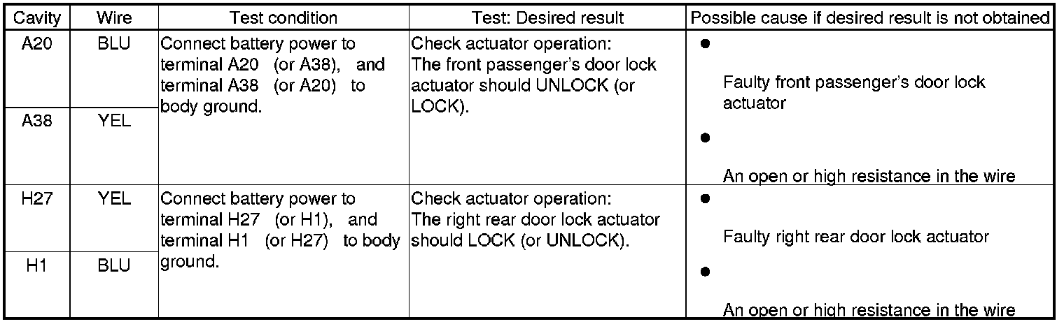 Keyless/Power Door Locks/Security System Input Test