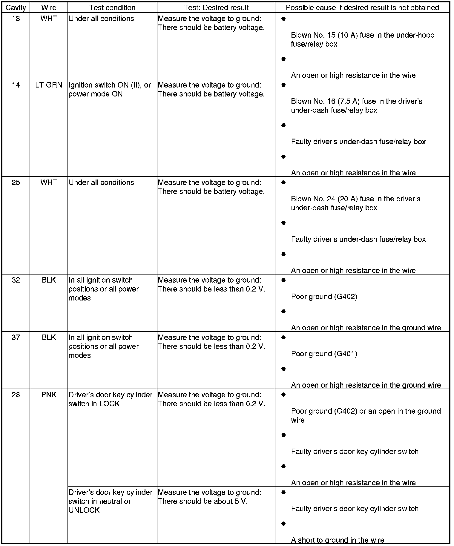 NOTE: Before testing, make sure the No. 25 (15 A) fuse in the driver's under-dash fuse/relay box is OK.