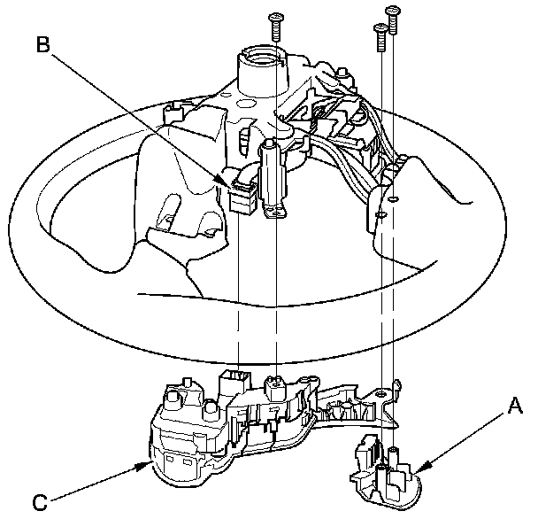 4. Disconnect the 12P connector (B), and remove the ACC combination switch/distance switch (C).