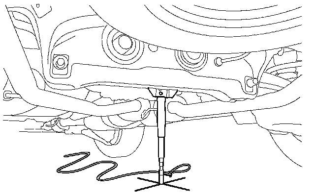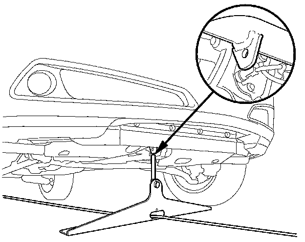 6. Rear area of the vehicle: Place the centering stand under the rear jack point, then mark the floor at the centerline of the tool.