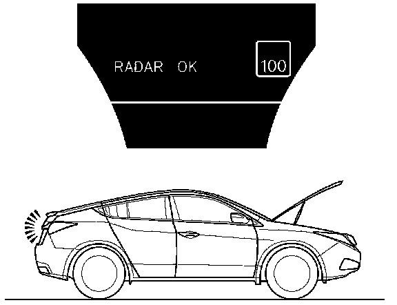 NOTE: The result of all auto aiming can be confirmed by the HDS, or by watching the MID. When watching the MID, if the auto aiming is confirmed, the MID will display "RADAR OK" with the specification of 100ᤣ2, and the brake lights will illuminate. When the target is out of auto range, the MID will display "NO TARGET", the brakes will not illuminate, and an audible tone will sound. The auto aiming is not complete. If DTC 120, 121, 122, 123, or 124 is indicated, the aiming target is not set correctly. Inspect the millimeter wave radar mounting for bent or damaged parts. Verify the vertical aiming. Reset the aiming target.