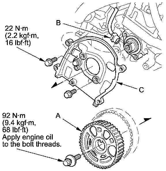 3. Disconnect the CMP sensor connector (B), then remove the back cover (C).