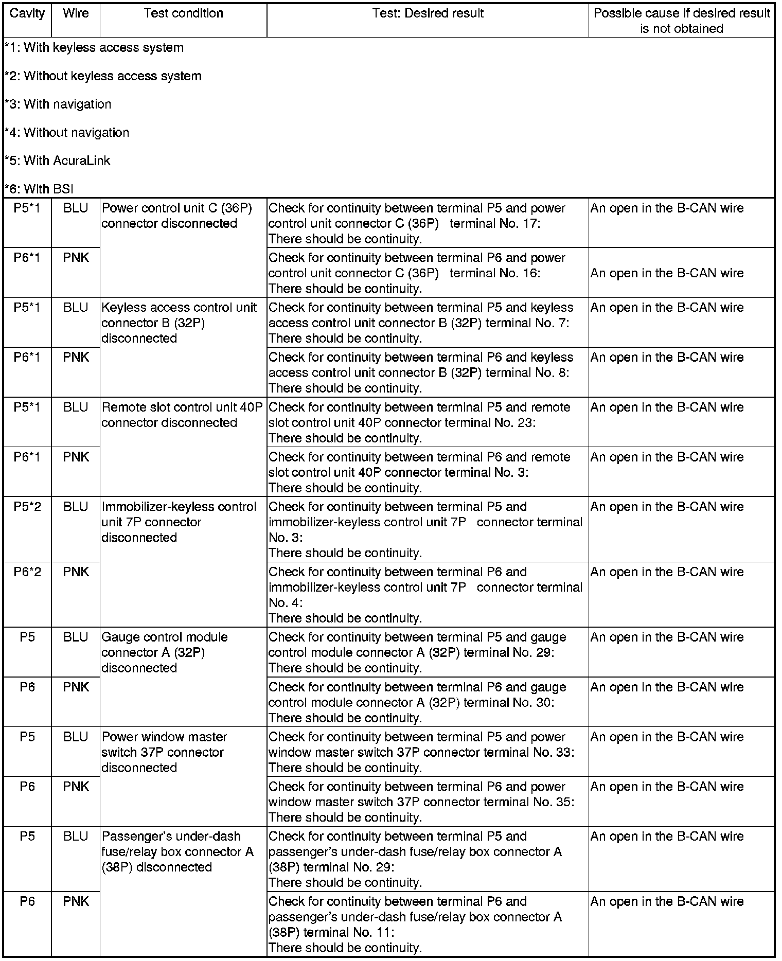 NOTE: Before testing, troubleshoot the multiplex integrated control system first, using B-CAN System Diagnosis Test Mode A Troubleshooting - B-CAN System Diagnosis Test Mode A.