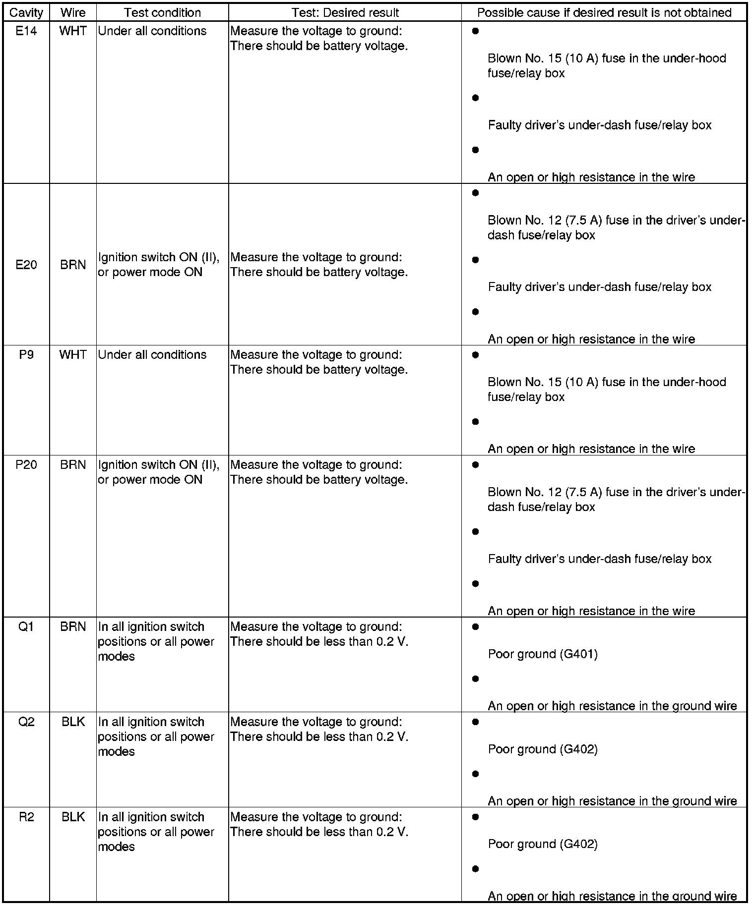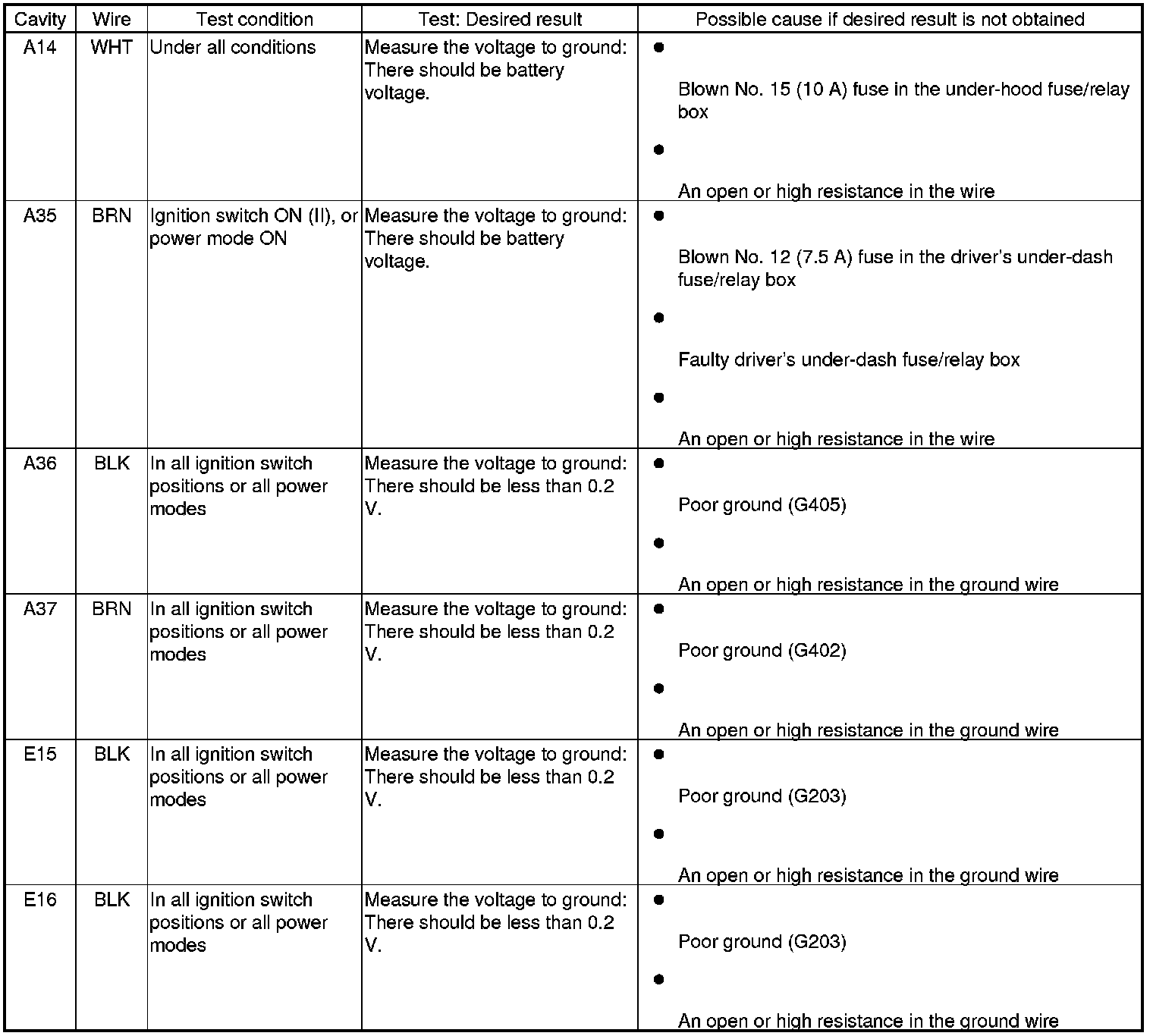 NOTE: These are power and ground tests for the driver's MICU.