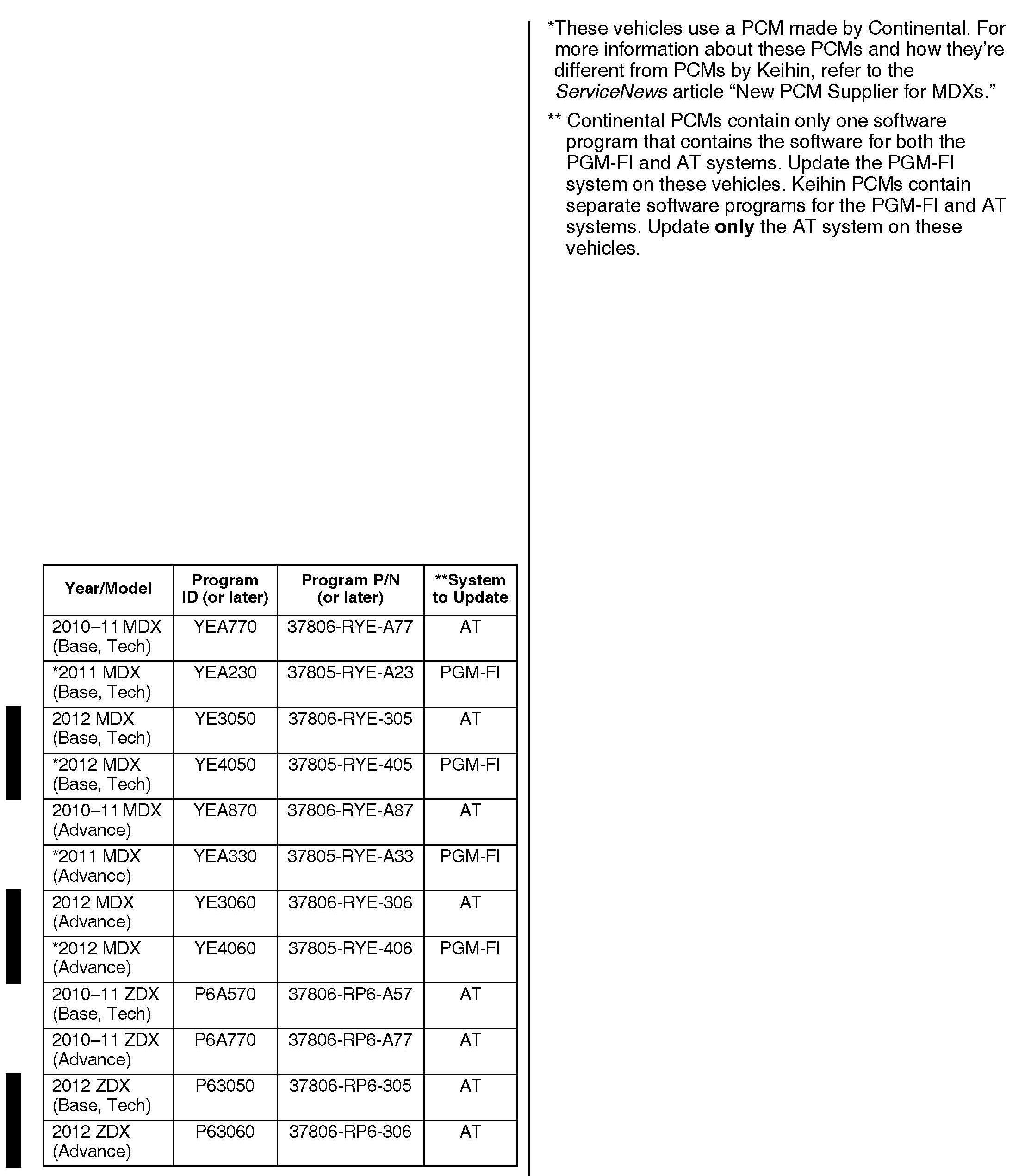 2010-12 MDX - Check the iN VIN status for eligibility 2010-12 ZDX - Check the iN VIN status for eligibility*