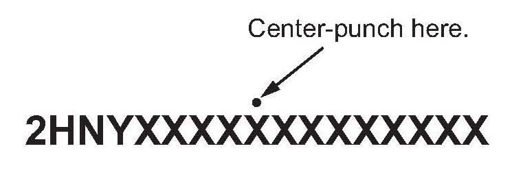 15. Center-punch a completion mark above the ninth character of the engine compartment VIN: